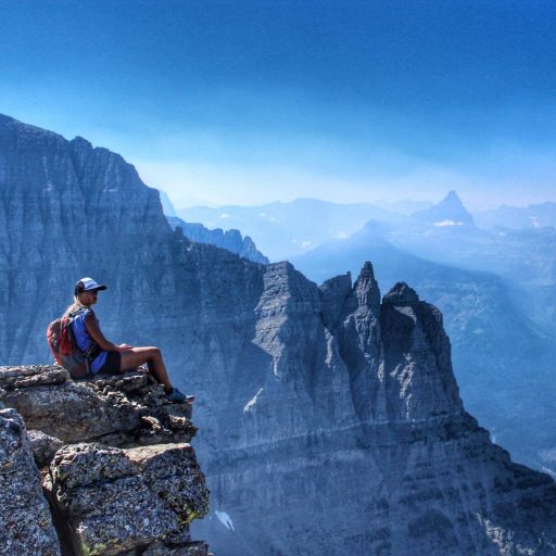 Previous Image Next Image Chris’ GNP Photos Jen sits atop Mahtotopa Mountain. The Great Gendarme from Little Chief Mountain is visible at her eye level